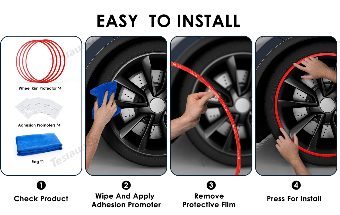 Falling off is something that all rim protector buyers worry about. We have done a lot of testing and product optimization for this. We chose 3M VHB double-sided adhesive, which has strong viscosity and excellent anti-aging performance. In addition, we redesigned the size and edge shape of the rim protector so that it fits tightly to the rim by its own tension. It is more than 3 times firmer than ordinary rim protectors.